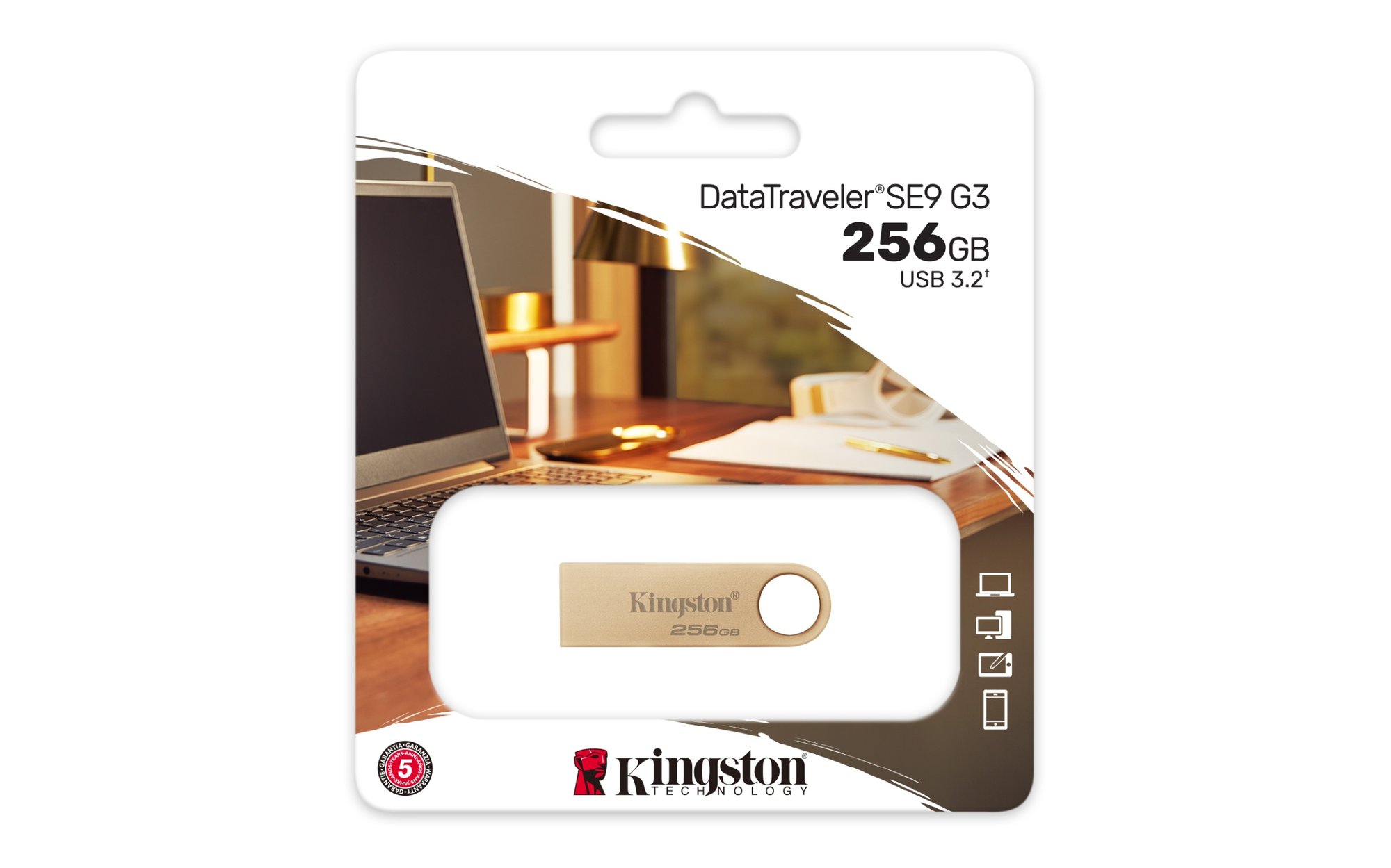 Kingston DataTraveler SE9 G3 USB 3.2 Gen 1, 256GB, guld