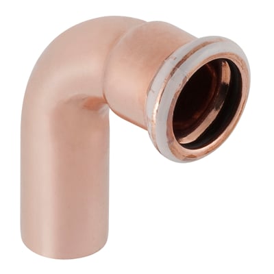 28 mm kobber bøjning med 90° vinkel, muffe og nippel fra Mapress.