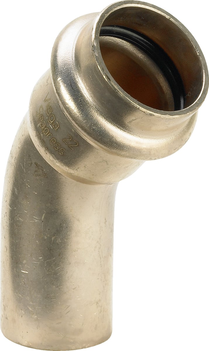 Presbøjning af CuNi10Fe1,6Mn legering. Til anvendelser med havvand. Fittings til hurtig og ren installation af hoved-, fordelings- og tilslutningsledninger.