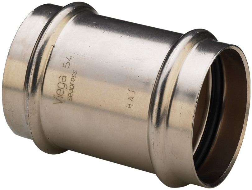 Pres skydemuffe af legeringen CuNi10Fe1,6Mn. Denne legering opfylder specielt kravene til anvendelser med havvand. Stærke og solide fittings til hurtig og ren installation af hoved-, fordelings- og tilslutningsledninger.