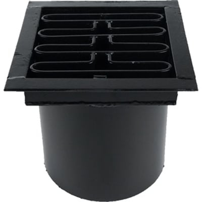 Duco HUGO flydekarm til Ø280 mm brønd med firkantet, sort rist og skørt i galvaniseret stål, klar til montering.