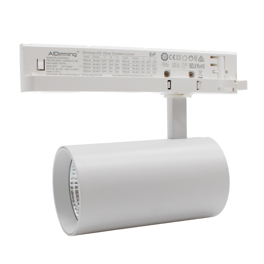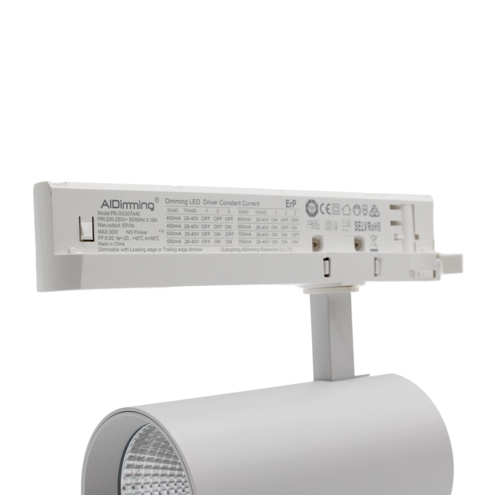 29W dæmpbar skinnespot fra LEDlife, hvid, 140 lm/W, RA 90, 38 grader, til 3-fasede systemer