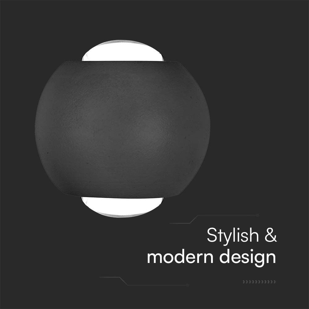 2W LED COB væglampe, op/ned lys - IP54, sort aluminium