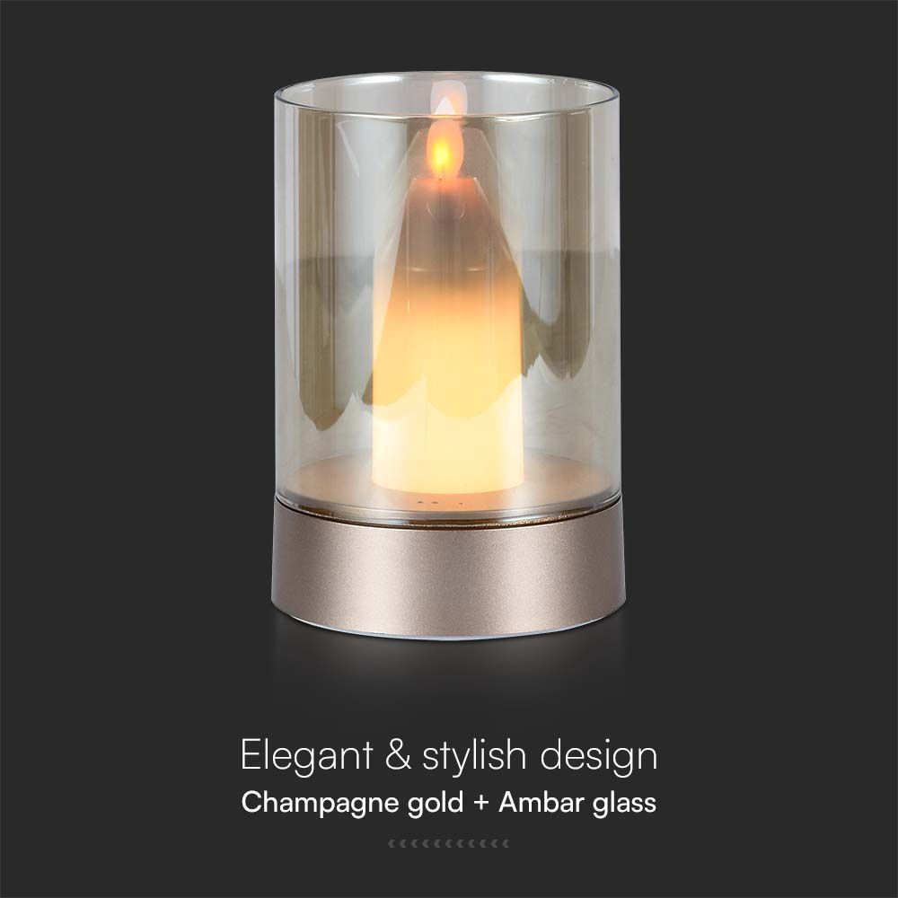2W LED kertepære bordlampe i champagne guld med amberglas, 3000K - V-Tac