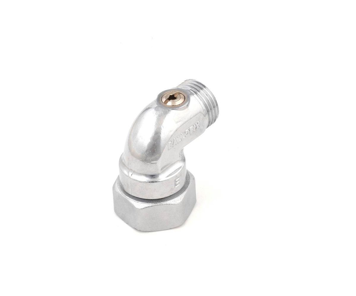 Forkromet vano-vinkel med afspærring, der forbinder 3/4" og 1/2" rør.