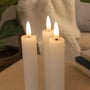 Dette sæt indeholder 3 elegante, hvide LED stearinlys, der bringer hygge og atmosfære ind i ethvert rum. Med en diameter på 2,2 cm og en højde på 24,5 cm ligner de traditionelle stagelys, men uden risiko for brand eller dryppende stearin.