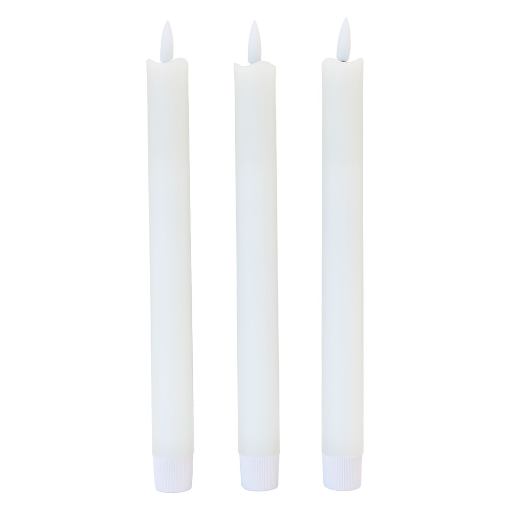 Denne pakke indeholder tre LED kronelys, der er designet til at efterligne ægte stearinlys med en realistisk flammeeffekt. Med en diameter på 2,2 cm og en højde på 24,5 cm passer de perfekt i de fleste standard lysestager. Lysene er batteridrevne, hvilket giver fleksibilitet i placeringen uden behov for stikkontakter.
