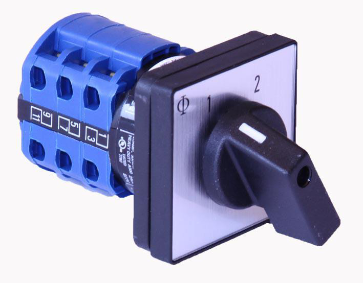 Kraus & Naimer omskifter, 3 polet, 20A, 1-2, 4 huls frontmontage 48x48 front, CA10 A222-600 E. Fås også i en 1 huls version.