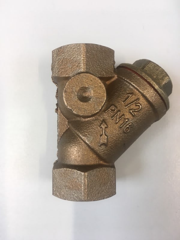 3" snavssamler i rødgods med integreret Y-filter fra Pettinaroli.