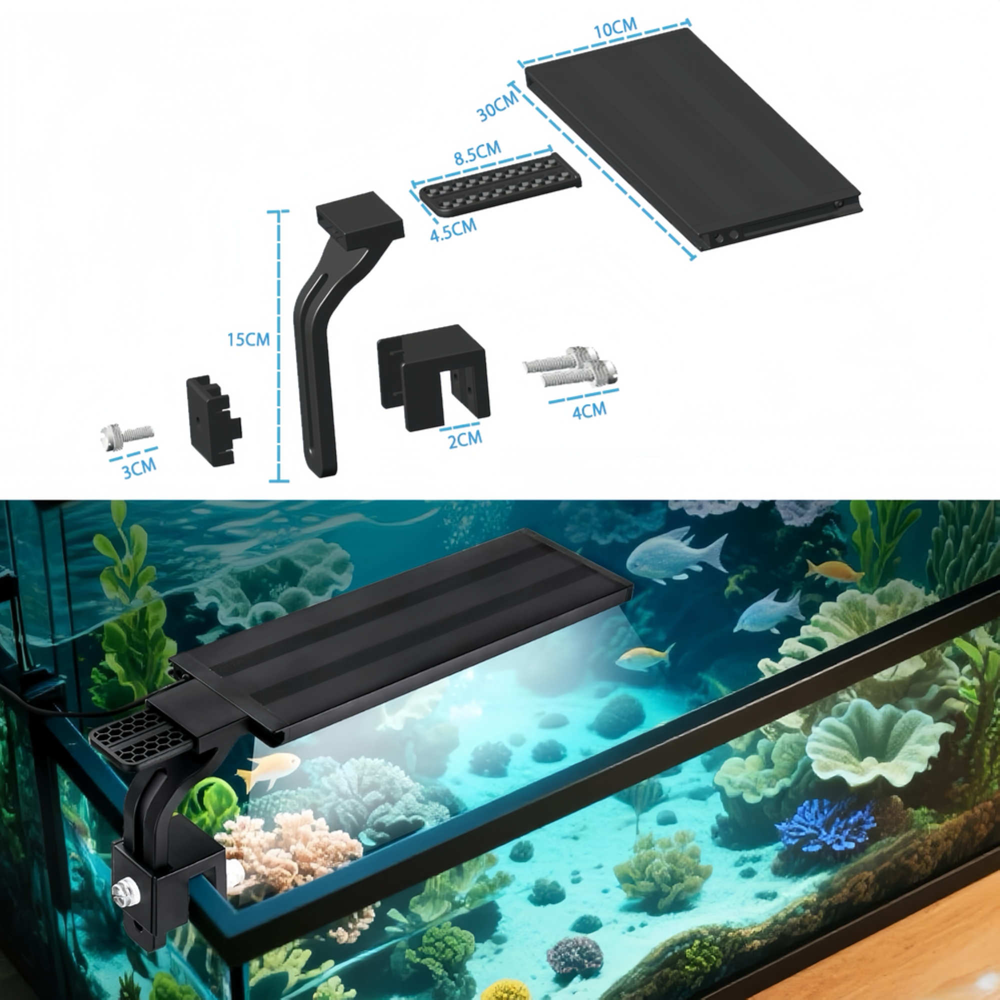 Denne 30 cm LED akvarielampe er designet til at give dit akvarie en optimal belysning med et bredt spektrum af farver. Med RGBW lys kan du skabe en stemning, der passer til dine akvariebeboere og planter, og fremhæve farverne i dit akvarium. Lampen har en effekt på 18W og tilsluttes direkte til en 230V strømkilde.