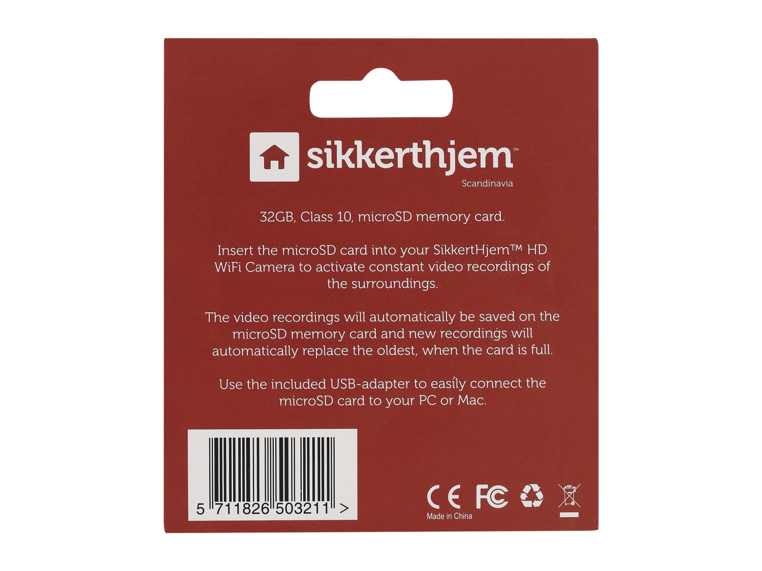 Med dette microSD™ hukommelseskort kan du gemme videooptagelser fra dit SikkertHjem™ indendørs- eller udendørs SmartCam. Afhængigt af den valgte opløsning, giver kortet adgang til 5-20 dages historiske optagelser via S6evo™ appen.