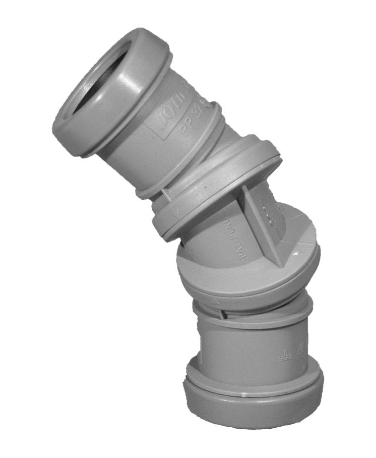 PURUS JOTIFLEX trinløs drejbar bøjning 0-90° 2 muffer Ø32mm Grå PP plast VA-Godkendt.