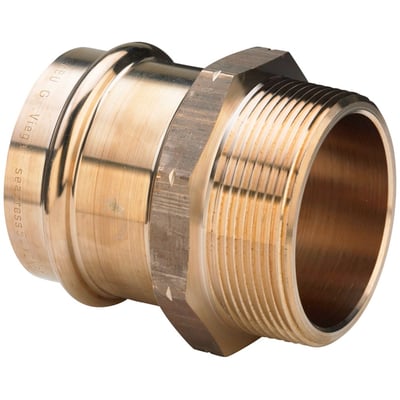 Pres overgangsnippel af legeringen CuNi10Fe1,6Mn. Denne legering opfylder specielt kravene til anvendelser med havvand. Stærke og solide fittings til hurtig og ren installation af hoved-, fordelings- og tilslutningsledninger.