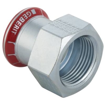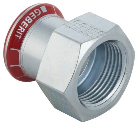 Geberit Mapress FZ el-forzinket overgang til varme- og køleanlæg. Med presseindikator og utæt ved manglende presning.