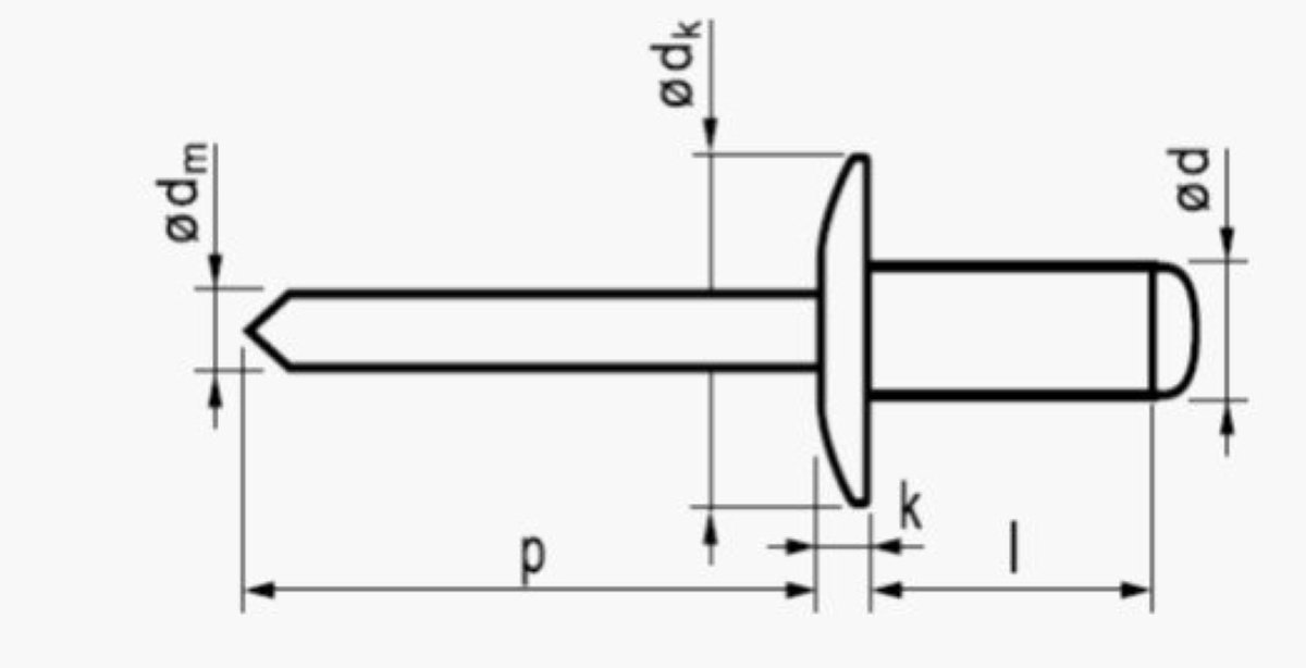 Standard nitte med rundt hoved og stort hoved. Fremstillet i aluminium og stål.