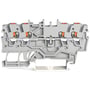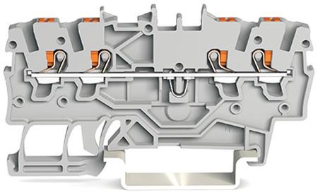 4-leder-gennemgangsklemme med betjeningsknap, 1 mm², med testport og side- og midteropmærkning. Til DIN-skinne 35 x 15 og 35 x 7,5. Push-in CAGE CLAMP, grå.