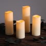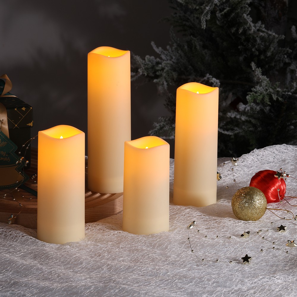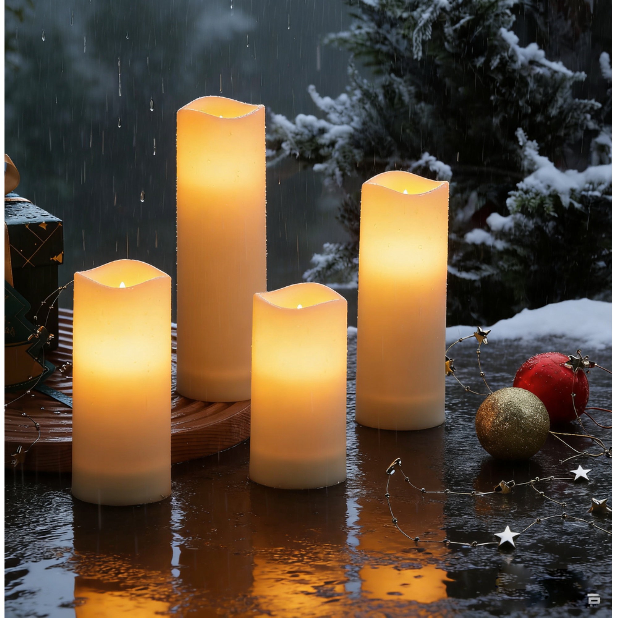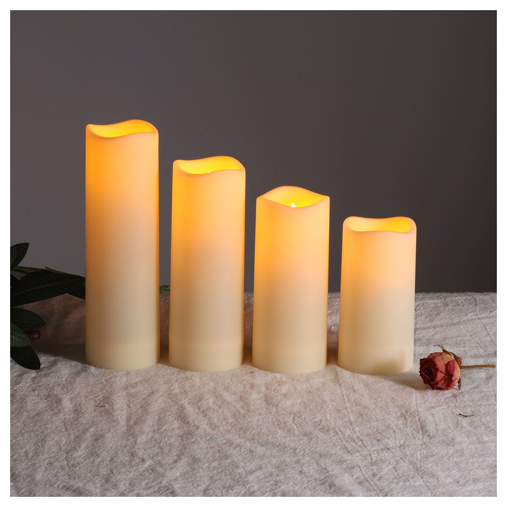 Pakken indeholder fire bloklys i forskellige højder: 10 cm, 13 cm, 15 cm og 17 cm, alle med en diameter på 5,5 cm. Dette giver dig mulighed for at skabe et dynamisk og interessant lysdesign. Lysene er fremstillet i holdbart ABS plastik og har en IP44 klassifikation, hvilket sikrer, at de kan modstå vandsprøjt og støv.