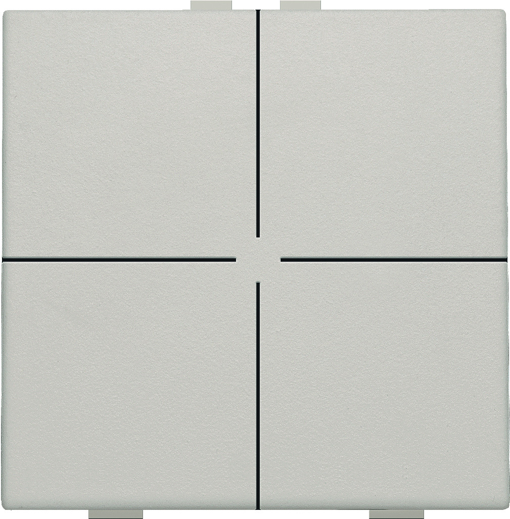 Niko 4-tryk i lysegrå (NHC) til tænd/sluk, lysdæmpning og scenarieaktivering. Klikkes nemt på et vægmonteret busprint. Leveres med tangent og fås i flere farver.