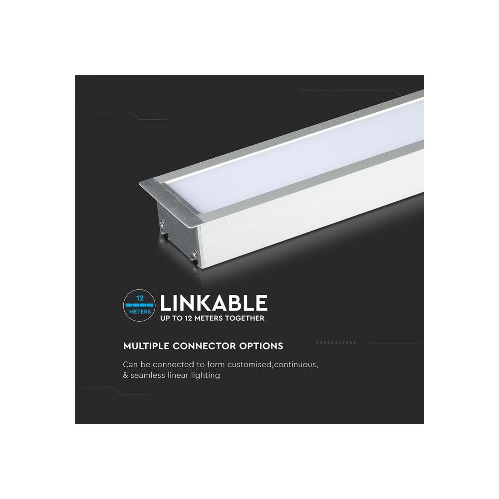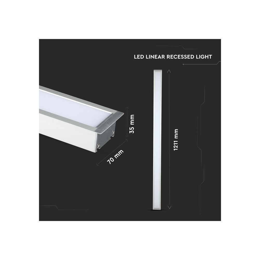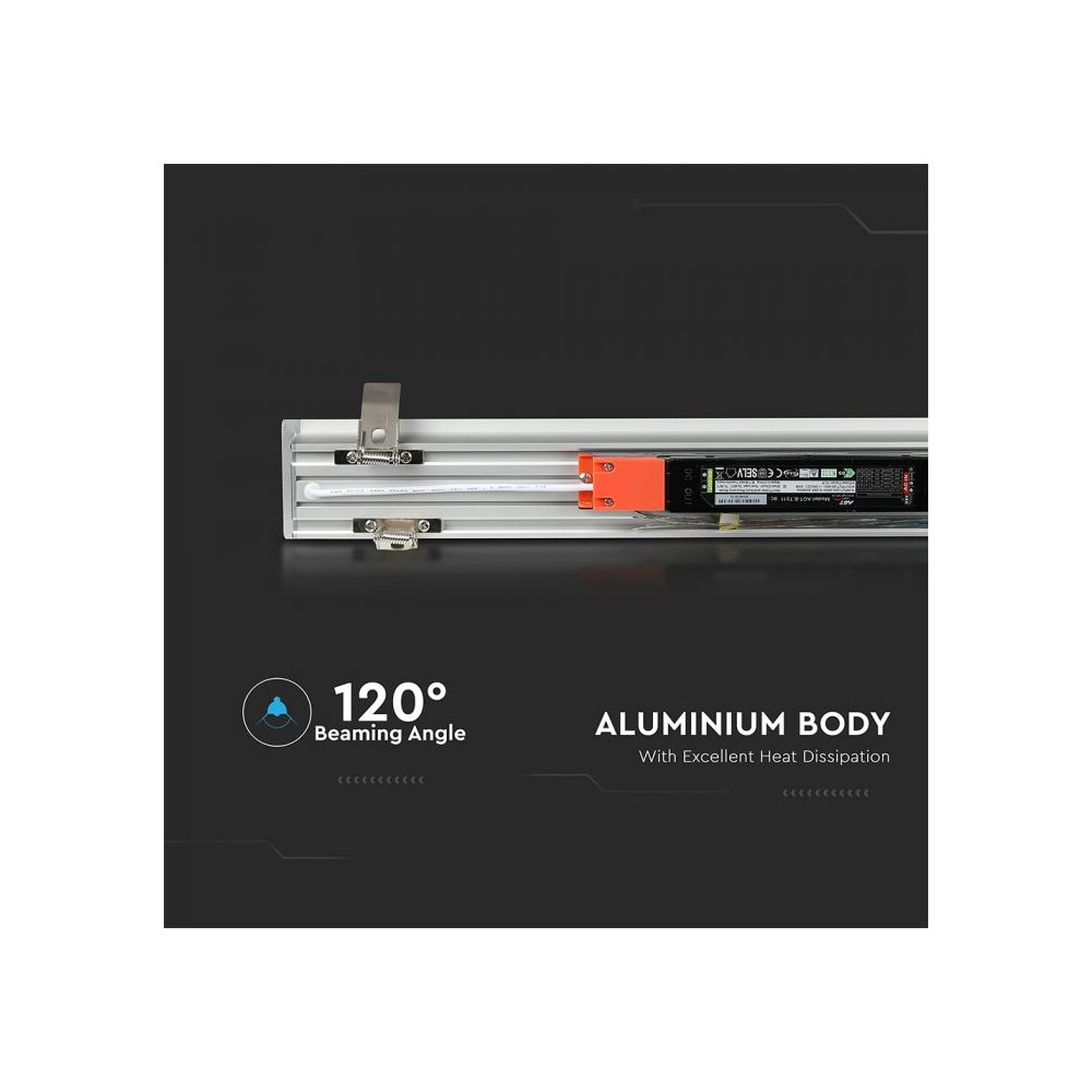 Dette nedsænkede lineære LED-lys er designet til effektiv og kraftfuld belysning. Med en effekt på 40W og en lysstyrke på 3200 lumen leverer det et klart og skarpt lys.