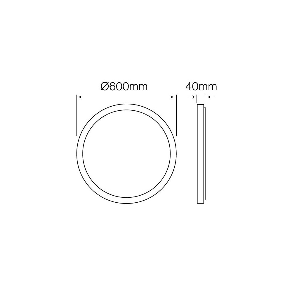Med dimensionerne 4 cm i højde og 60 cm i diameter er dette panel kompakt og nemt at installere i forskellige rum. Det har også en integreret lyskilde, hvilket betyder, at der ikke er behov for at købe yderligere lyskilder eller lamper. Dette gør det til en bekvem og økonomisk belysningsløsning.