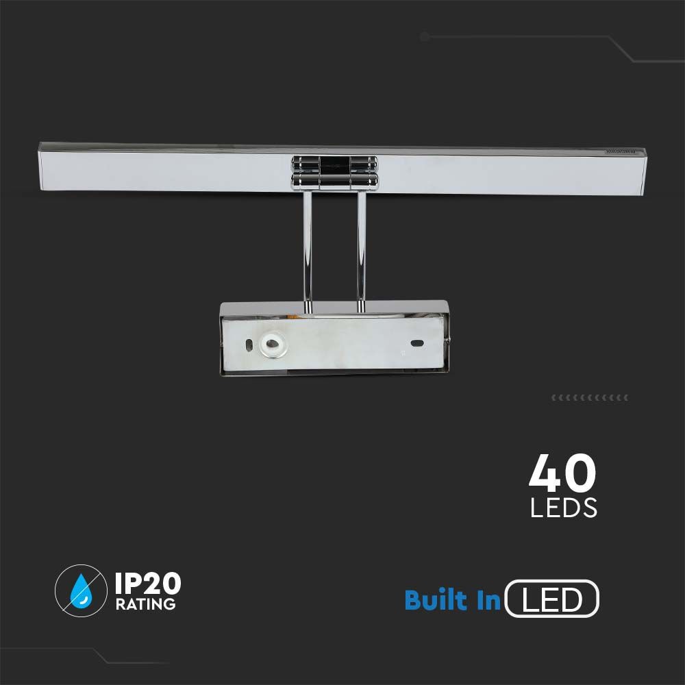 Billede-/spejllampe med 9W LED, 380 lumen og 3000K varmt hvidt lys. Firkantet, bevægelig ramme i krom.