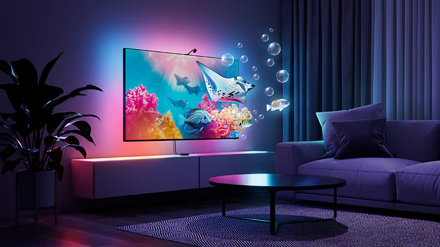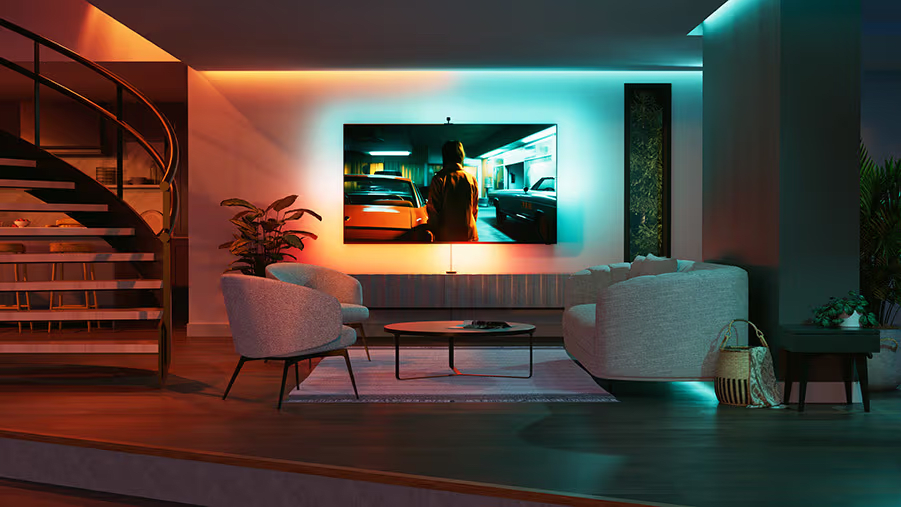 - 4,3 meter lang lyslist, der passer til de fleste tv-størrelser.