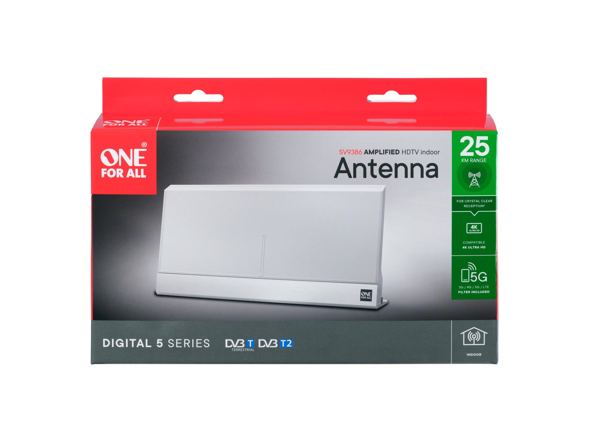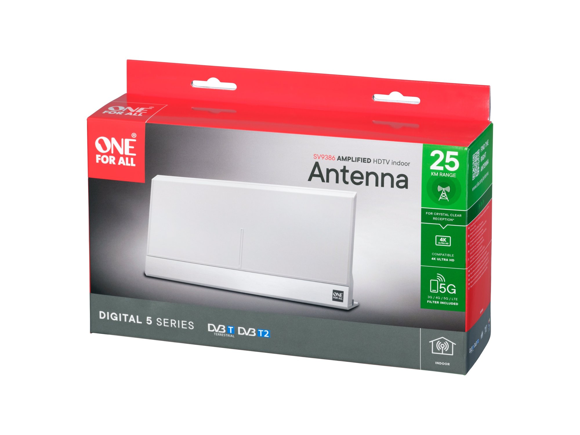 Denne indendørs antenne er kompatibel med 4K Ultra HD DVB-T/DVB-T2-programmer og har et 3G/4G/5G/LTE blokfilter for optimal modtagelse.
