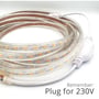 Denne 5 meter lange, vandtætte LED strip af typen Q er ideel til både indendørs og udendørs brug takket være dens IP67-klassificering, der sikrer beskyttelse mod støv og vand. Stripen har et forbrug på 6 watt pr. meter og tilsluttes direkte til 230 volt.