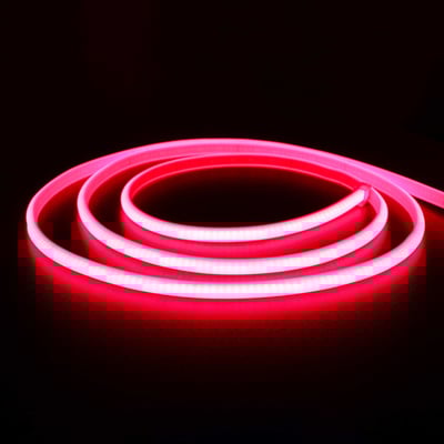 Rød Neon COB strip på 5 meter til 230V, IP67-klassificeret og dæmpbar. Med 288 LED pr. meter og et forbrug på 11,5W/m, kan den klippes hver 10 cm for fleksibel installation. Læs mere…