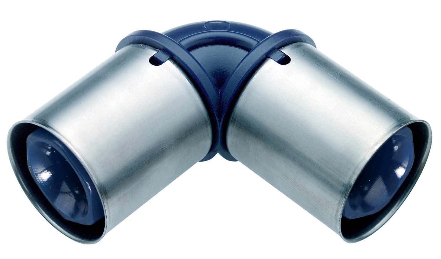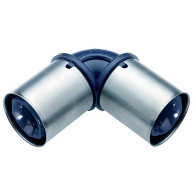 Presfitting som anvendes til Tigris Alupex-rør fra Wavin. Har preskoblinger i begge ender. Derudover er enderne vinklet 90° i forhold til hinanden.