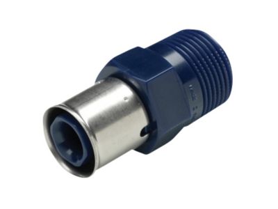 Presfitting som anvendes til Tigris Alupex-rør fra Wavin. Bruges som overgang fra preskobling til rørgevind. Har en preskobling i den ene ende og et udvendigt gevind i den anden.
