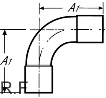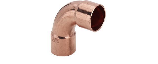 90° bøjning i kobber med loddetilslutning, d: 54 mm. Kvalitetssikret til d12-54.
