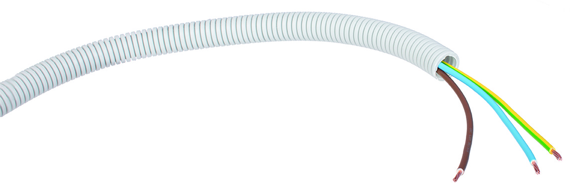 Halogenfri flexrør med pre-wired ledere til synlig og skjult installation. Kan indstøbes i beton.