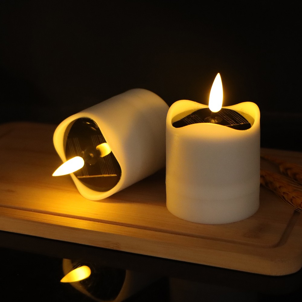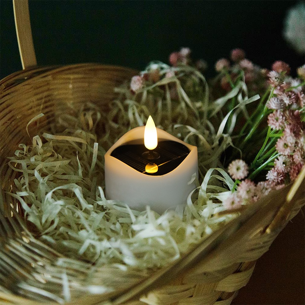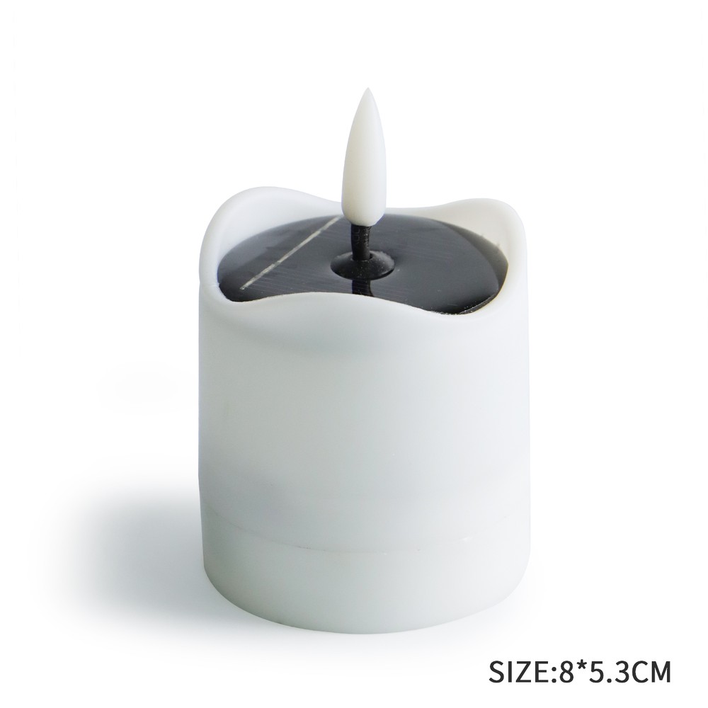 Praktisk 6-pak LED solcelle stearinlys til udendørs brug. Med en højde på 8cm og en diameter på 5cm, er de ideelle til at skabe hyggelig stemning.