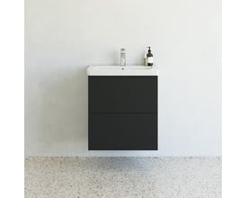 Smart møbelpakke med 60 cm bredt vaskeskab fra Dansani Mido+ Classic med glat front og åbent opbevaringsrum. Inkl. Amber vask i porcelæn. Fås i flere farver.