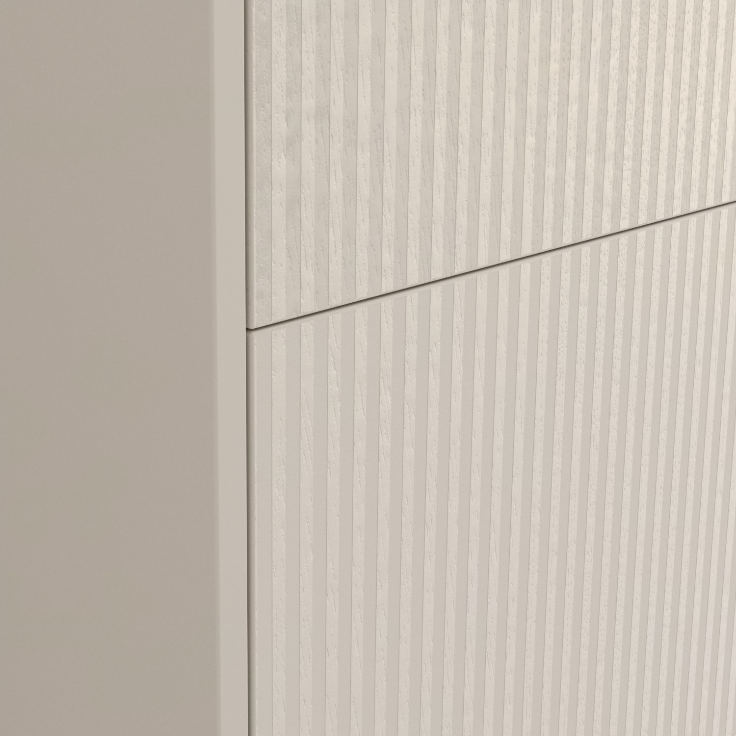 Elegant 61 cm bredt vaskeskab fra Dansani Mido+ Classic med stribet front, der tilføjer tekstur og personlighed. Praktisk opbevaring og slidstærk Amber vask.