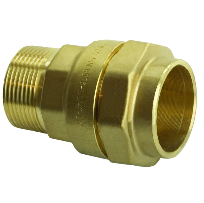 Isiflo overgangskobling med nippel i afzinkningsbestandig messing. Sikrer tæt og trækfast forbindelse til forskellige rørtyper.