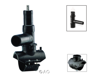 ELGEF Plus topanboringsventil 63 x 63 mm med indbygget bor til anboring af rør under tryk. Fremstillet i PE100. Garniture leveres separat.