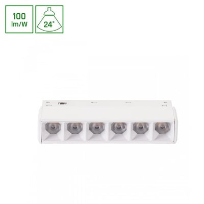 Kraftfuld 6W skinnespot med neutral hvidt lys (400 lumen). Ideel til 48V DC systemer med en spredning på 24 grader. IP20 klassificeret. Læs mere…