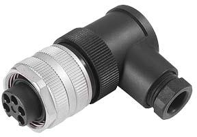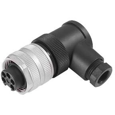 24 V Hun-stik, 7/8" vinklet, 5-polet, max. 1.5 mm2 med skrue terminaler. IP67-klassificeret når tilsluttet og skruet i.