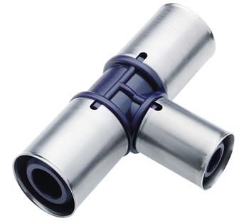 Presfitting som anvendes til Tigris Alupex-rør fra Wavin. T-stykke med preskoblinger i begge ender samt afgreningen. Findes i flere udgaver hvor enten afgrening, hovedrøret eller alle enderne er reduceret i forhold til hinanden.