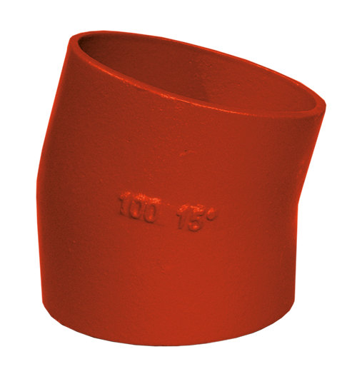 SML bøjning i støbejern med en diameter på 83 mm og en vinkel på 15°.