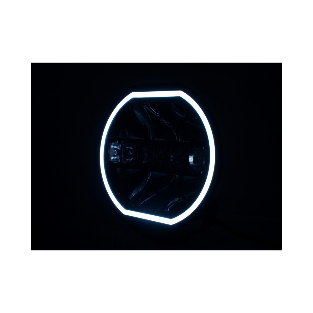 Kraftig 144W LED fjernlygte med 11500 lumen. E-godkendt, IP67, og med dual positionslys.