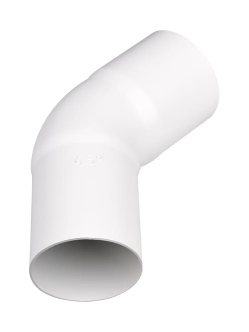 Plastmo bøjning til ventilation, Ø90mm, 45 graders vinkel i hvid plast.