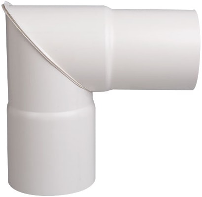Knærør i plast til afløbssystemer. Diameter 90 mm, 90 graders vinkel. Farve: Hvid.