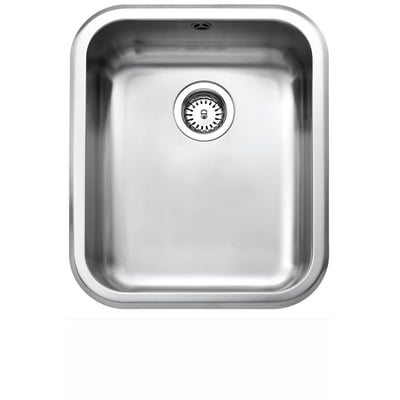 Firkantet køkkenvask til underlimning eller planlimning, fremstillet i poleret rustfrit stål med inkluderet overløb og strainer.
