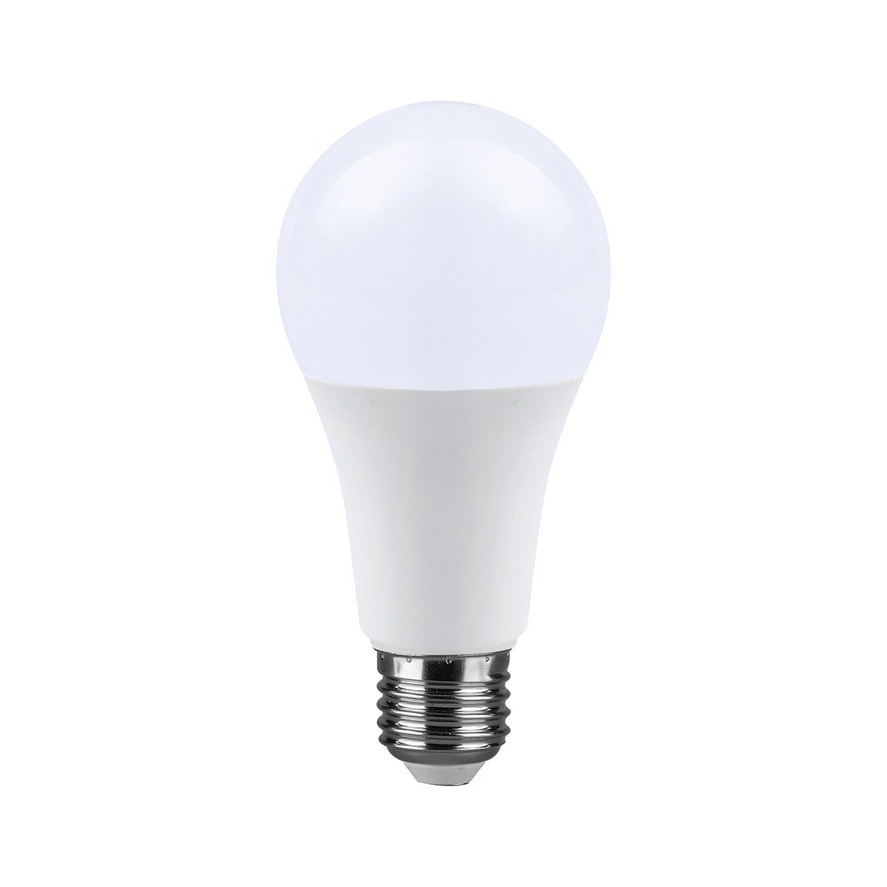 A65 LED pære med E27 fatning, 15W, 6500K (kold hvid) lysfarve og 200° spredning. Fremstillet af plast med IP20 klassifikation.