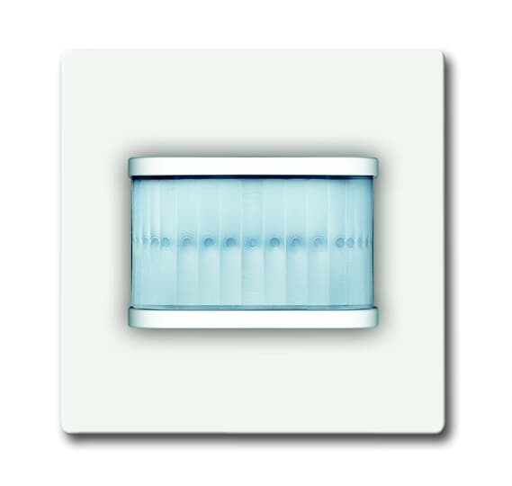 Standard KNX bevægelsessensor fra ABB med buskobler. Detekterer bevægelse i en afstand af 6 m (foran og i siderne) og har en detektionsvinkel på 180°.
