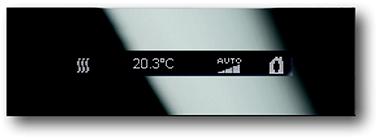 Kombineret med 3/6 tryk betjeningselement, Busch-priOn. Med integreret rumtermostat, display, nærhedsføler og IR-modtager.