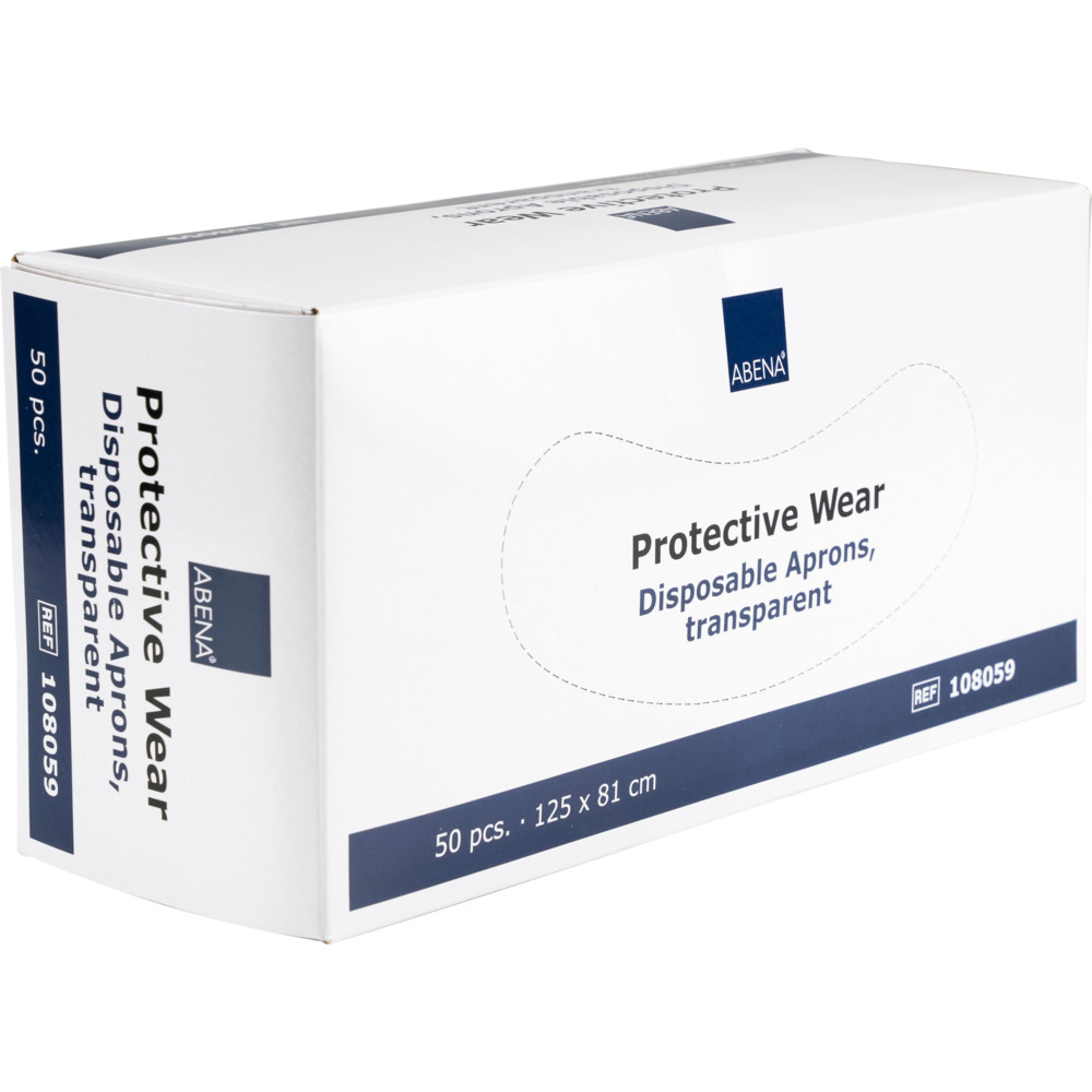 Engangsplastforklæde med lukket bånd om nakken og bindebånd på ryggen, pakket i dispenserboks. Passer i handskestativ. Bruges til hygiejnisk beskyttelse.